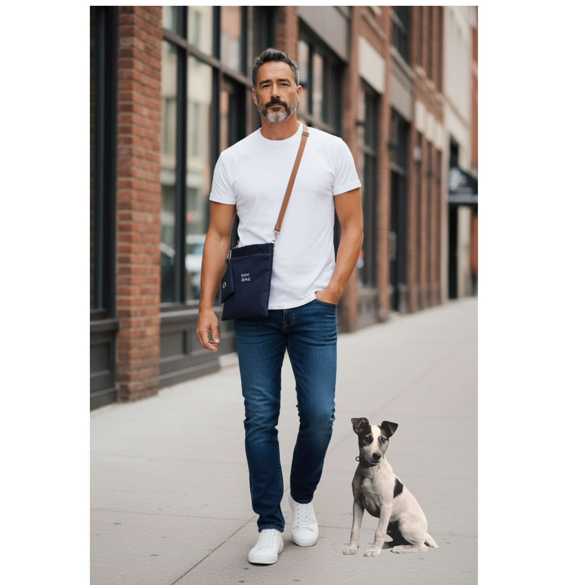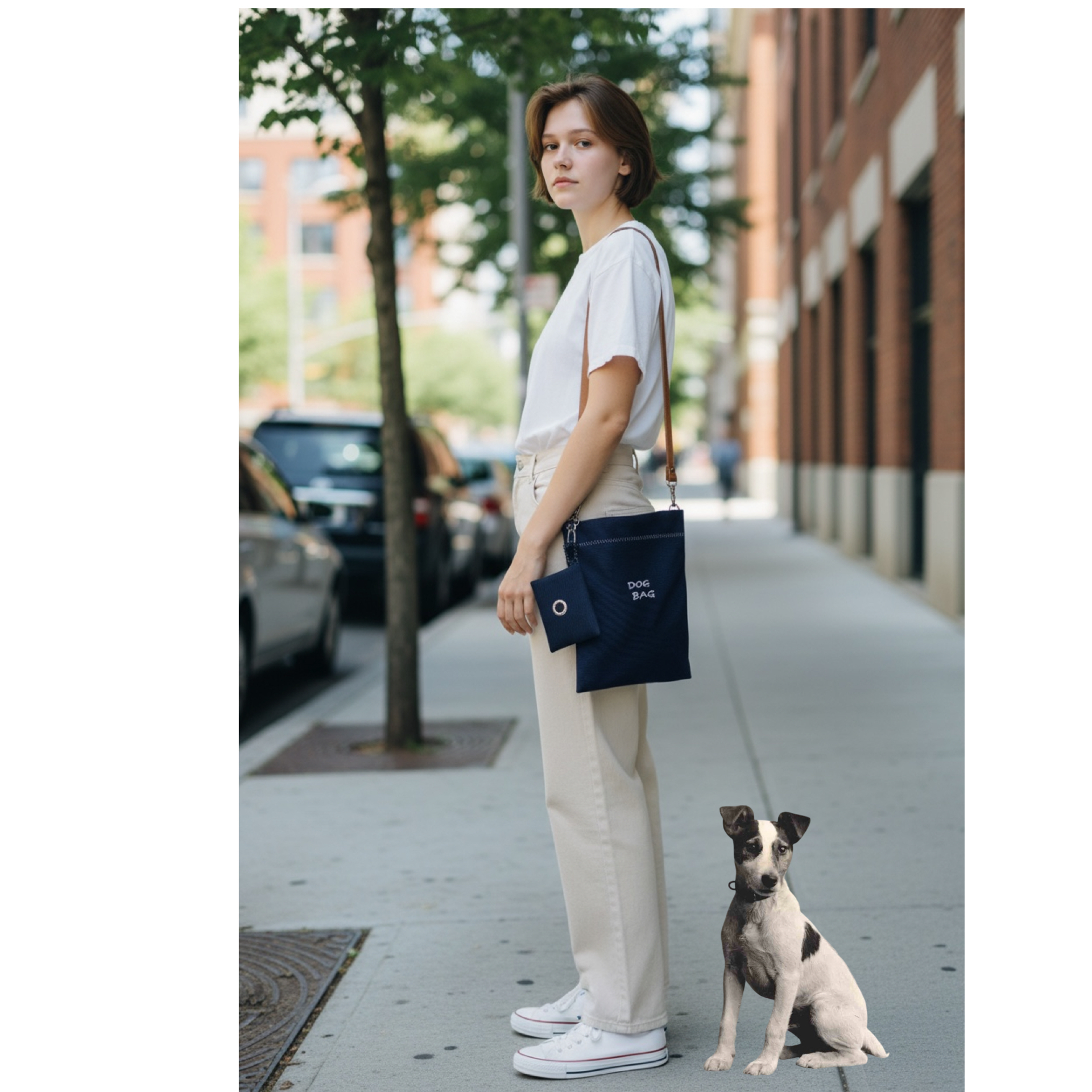 Realizzata in tessuto lavabile blu e creata in collaborazione con Francesca Bombace di Dudu sartoria , questa borsa è pensata per i padroni di cani più attenti e alla moda! 🐾